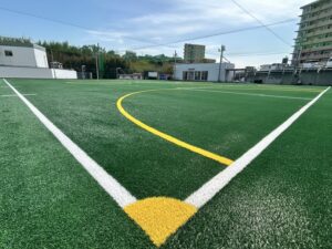 大分市にてフットサル場の人工芝敷設工事を施工いたしました。本施設は、もともと…