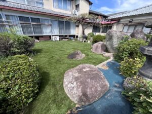 広いお庭の雑草に悩まされていた施主様 環境芝を敷設され、お庭が明るくなりお手…